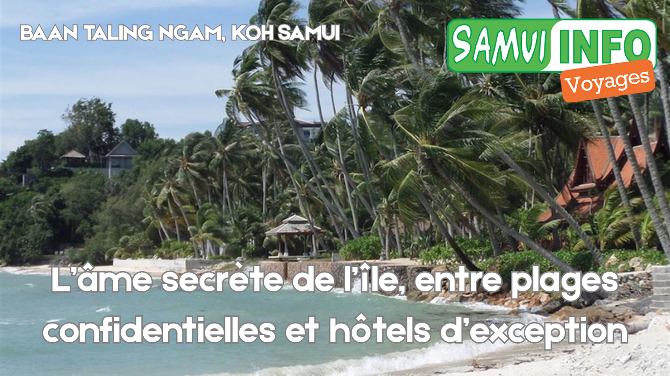 Grâce à sa plage préservée, à ses couchers de soleil spectaculaires et à son offre hôtelière qualitative, Baan Taling Ngam s’impose comme l’un des secteurs les plus exclusifs de Koh Samui. Des établissements comme le Sunset Beach Resort et le Am Samui Resort incarnent parfaitement cette philosophie : proposer une expérience immersive, élégante et respectueuse de l’environnement.