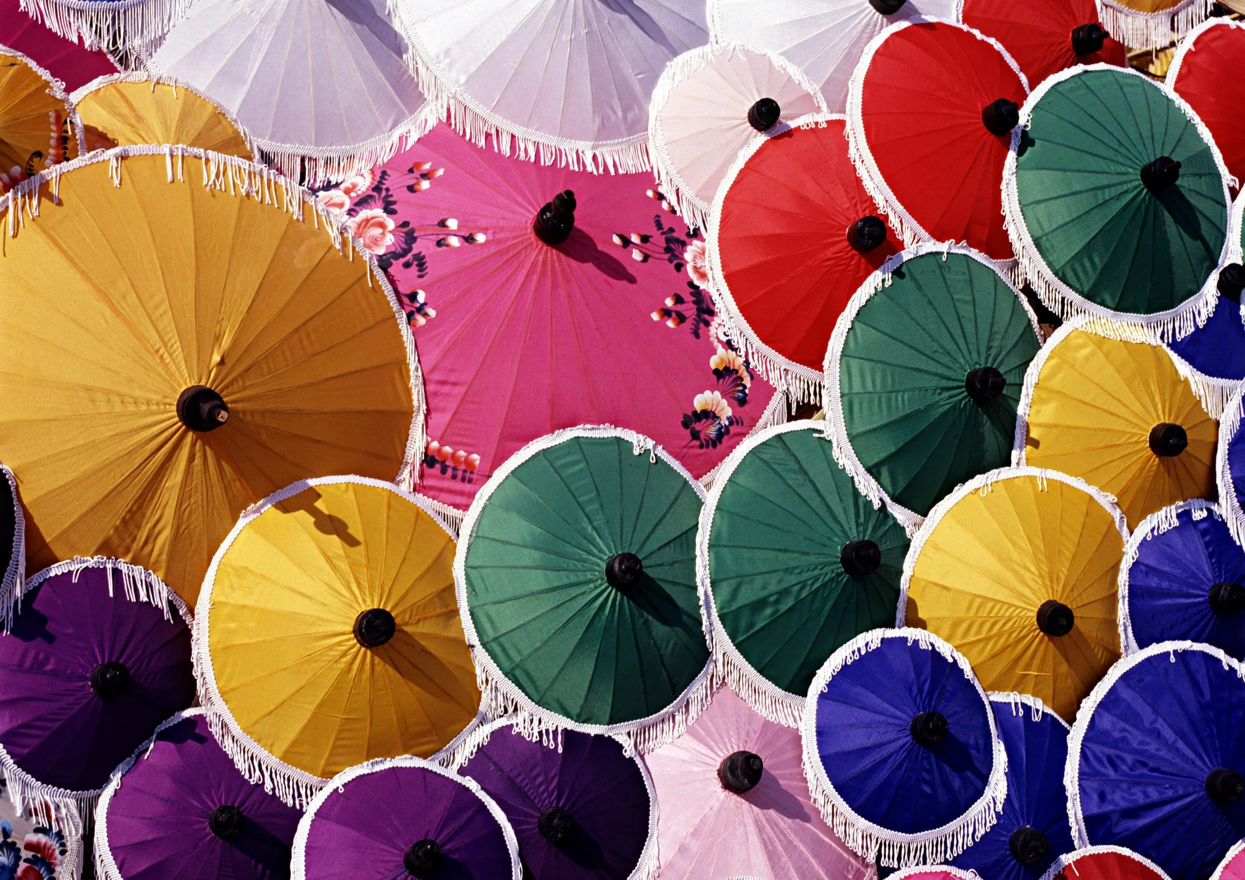 Enduites d’huile, ces ombrelles avaient la particularité de protéger à la fois de la pluie et de la chaleur, tout en restant légères et élégantes. Fasciné par leur ingéniosité et leur beauté, le moine rapporta quelques exemplaires dans son village natal de Bor Sang, situé à quelques kilomètres de Chiang Mai.