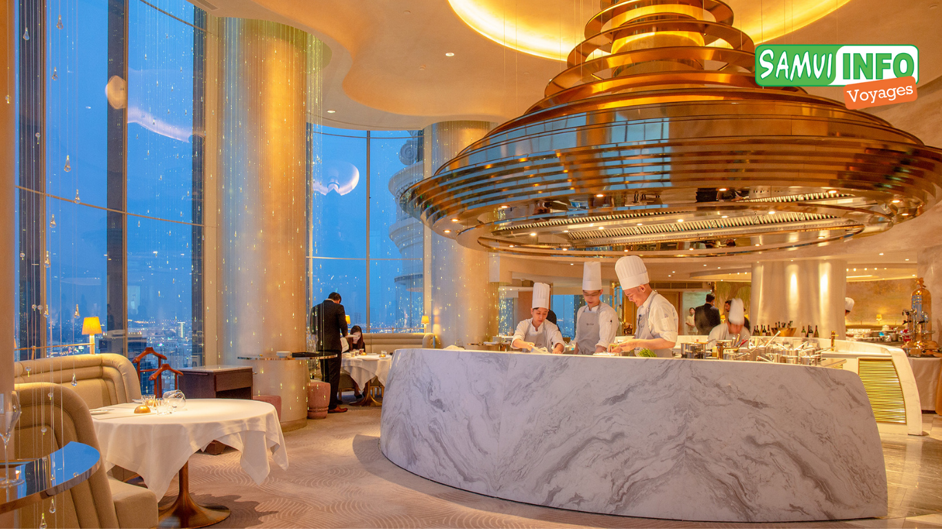 Pour les amateurs de gastronomie française à Bangkok, Chef’s Table au Lebua State Tower est une destination incontournable, où chaque repas devient un voyage des sens et un spectacle pour les yeux.