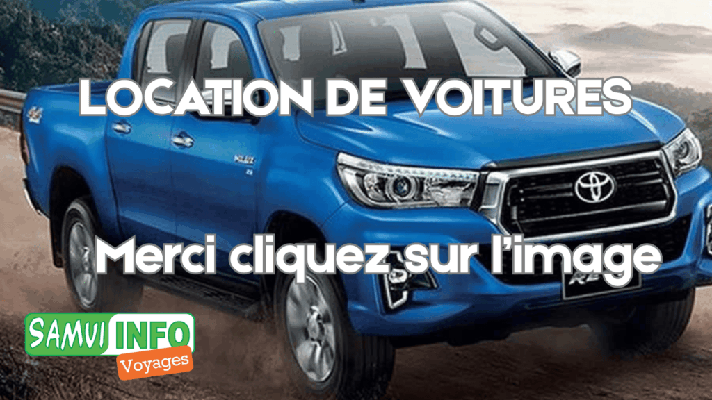 Pour les familles, les groupes ou les voyageurs avec beaucoup de bagages, la voiture ou le pickup est l’option la plus confortable. Elle permet de parcourir l’île sans effort et de transporter facilement tout votre matériel. La location se fait à l’aéroport ou via les agences locales, souvent avec assurance et climatisation incluses.
