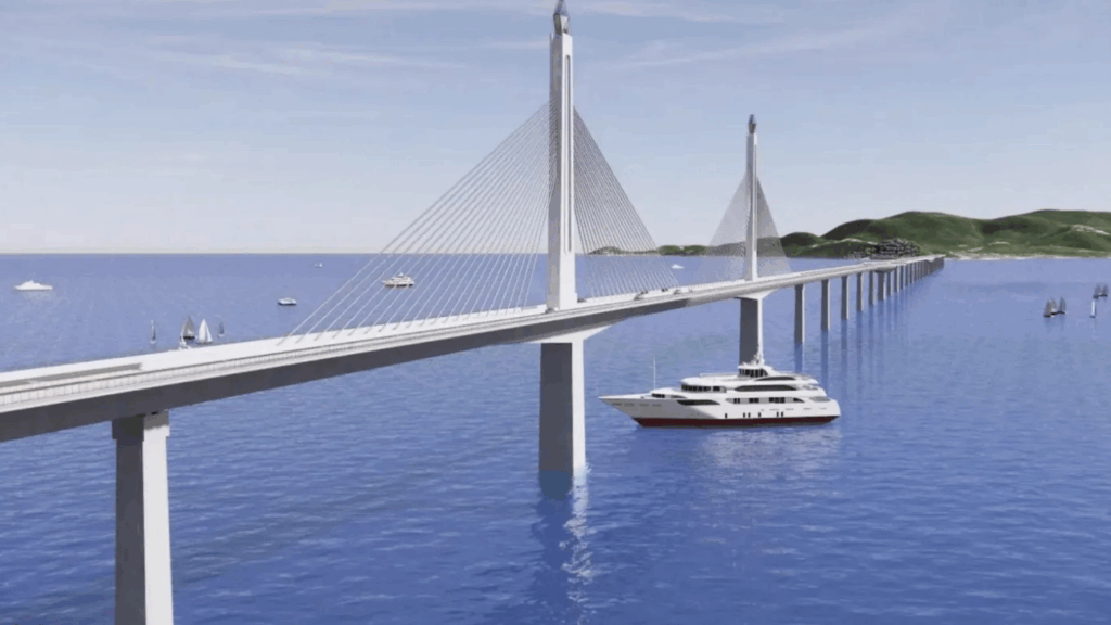 Long de 37,4 km, l’ouvrage devrait accueillir jusqu’à 8 000 véhicules par jour, réduisant le trajet à seulement 10 à 15 minutes au lieu de plusieurs heures de ferry. Sa conception répondra aux normes internationales, capable de résister aux tempêtes et aux séismes, avec une travée de 300 mètres et une hauteur suffisante pour laisser passer les navires militaires et humanitaires.