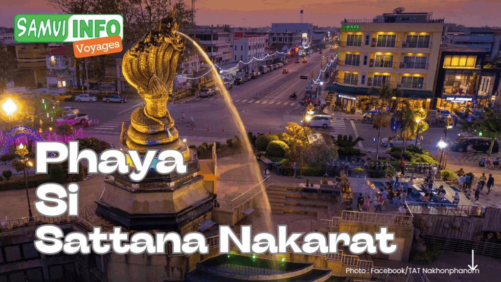 Le Phaya Si Sattana Nakarat n’est pas seulement une sculpture : c’est une présence. On dit que ses écailles, de bronze doré, semblent respirer à la lumière du crépuscule. On dit qu’il protège la ville, appelant les bénédictions sur ceux qui viennent lui offrir fleurs, encens ou simples pensées silencieuses. On dit même qu’il réenchante les destins fatigués.